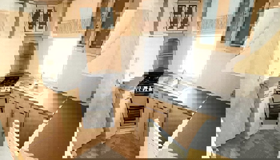 Step into a light-filled lounge with large wrap-around windows, giving the room a lovely open feel. The living space features a large L-shaped sofa, perfect for relaxing or entertaining, along with a cosy feature fireplace and neutral décor throughout — clean, comfortable, and ready to enjoy.