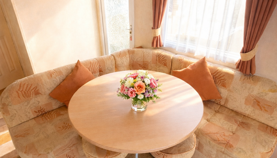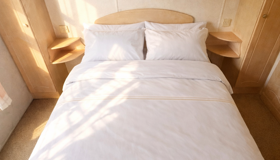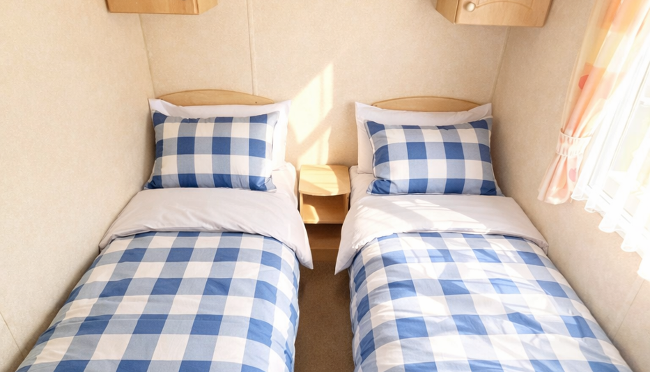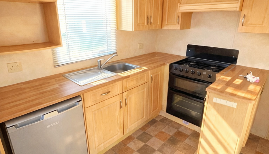 Accommodation includes a comfortable master bedroom with fitted storage and a welcoming twin bedroom, ideal for family holidays or guests. Finished in warm, neutral tones throughout, this holiday home feels cosy, well maintained, and ready to enjoy immediately.