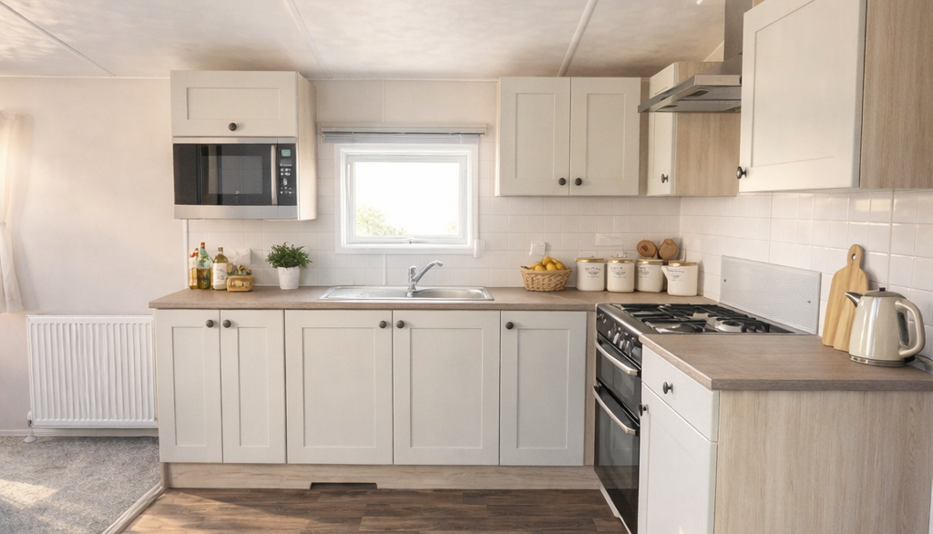 Introducing the brand new 2026 Saffron Deluxe – a stunning 2-bedroom holiday home measuring 39ft x 13ft, designed with both comfort and style in mind. This beautifully presented model features a bright and spacious open-plan living area, with large windows allowing plenty of natural light to flow throughout and front opening doors for added light and outdoor access, creating a warm and inviting atmosphere perfect for relaxing or entertaining.